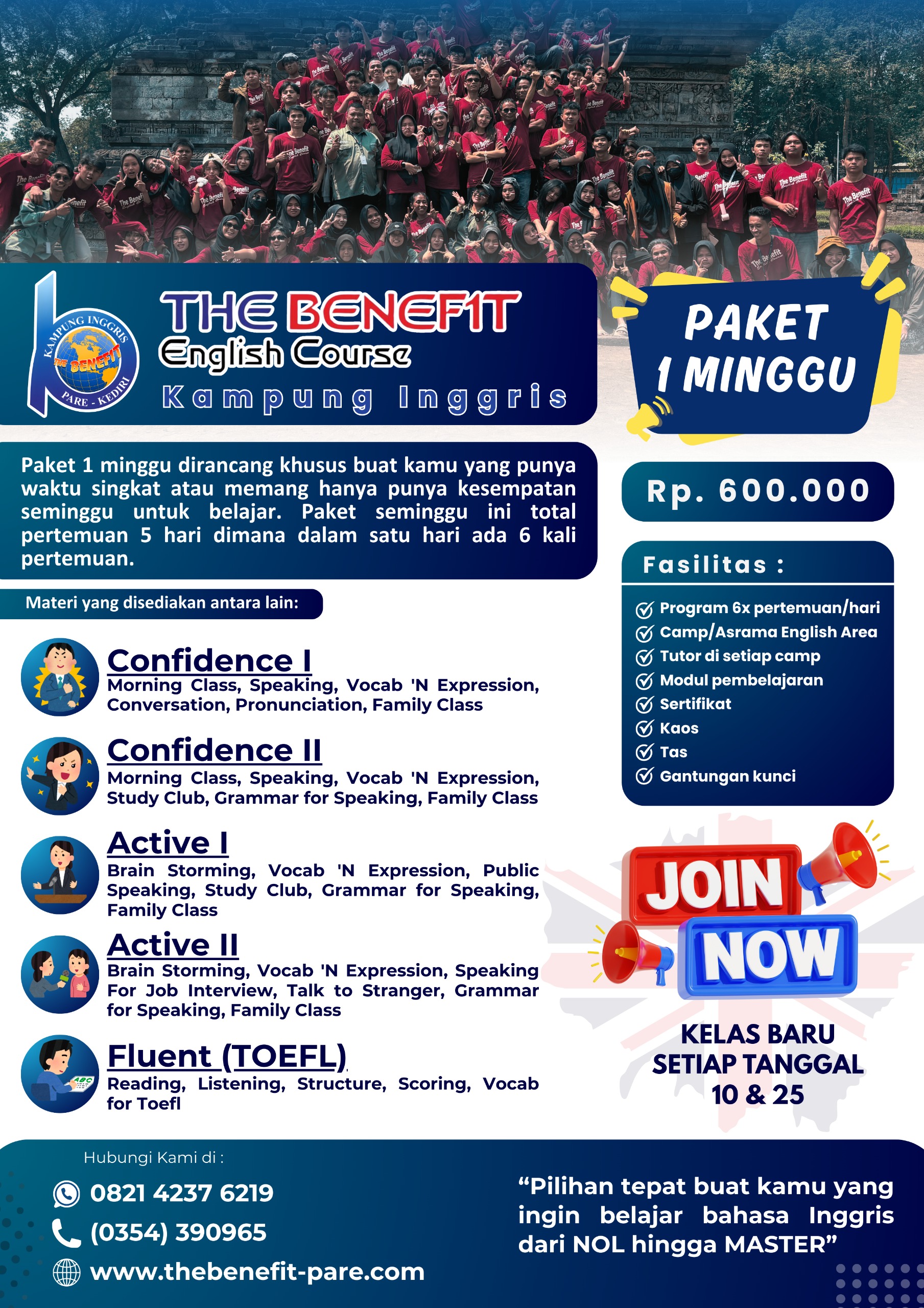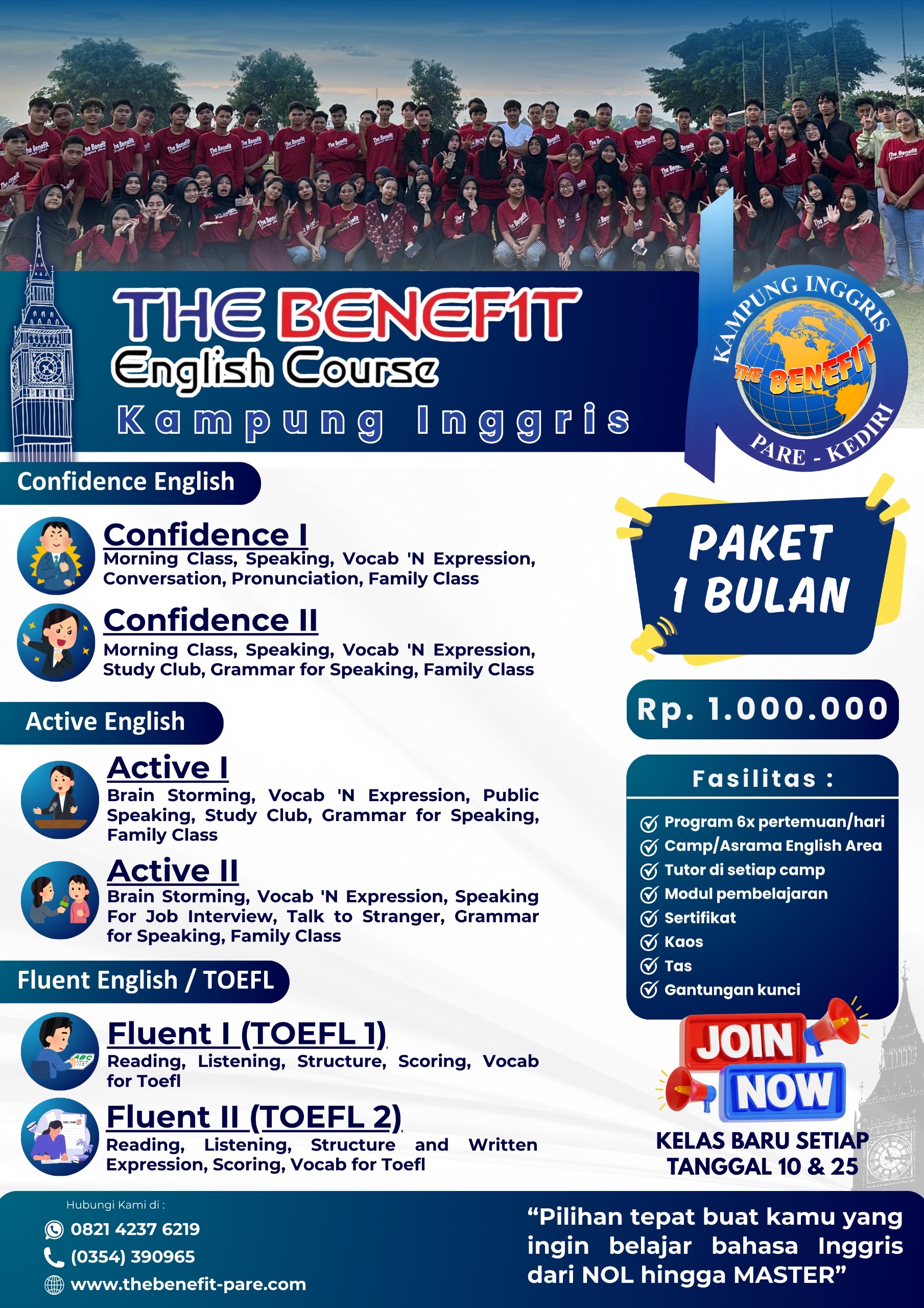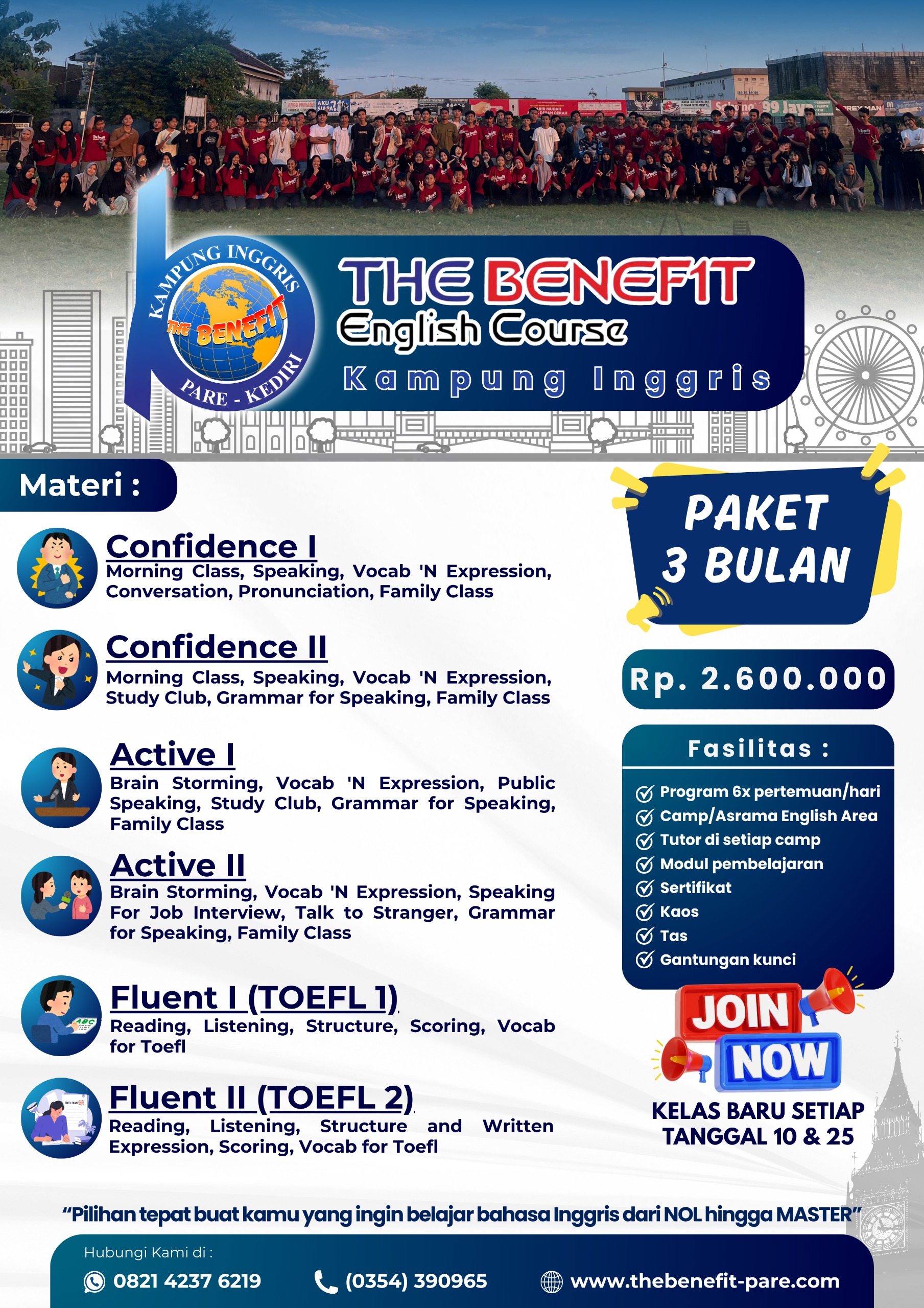 PAKET KURSUS THE BENEFIT ENGLISH COURSE